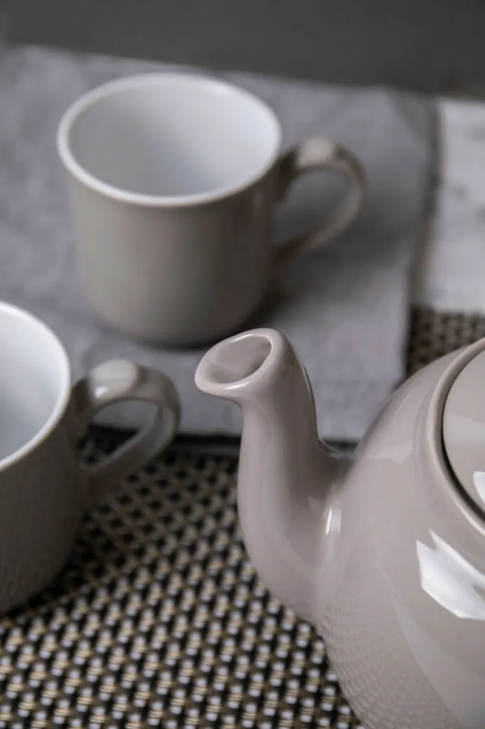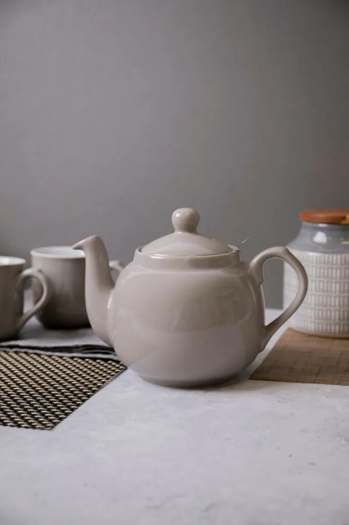 Disfrute de una relajante taza de té servida con un toque de estilo tradicional, utilizando esta clásica tetera Farmhouse de London Pottery. Un excelente ejemplo de diseño británico de alta calidad, esta tetera te permitirá servir infusiones impecables a la hora del té. Tiene un filtro extraíble para contener hojas de té sueltas e infusiones florales mientras se reposan, sin dejar que entren residuos en la taza. Diseñada por David Birch, reconocido ceramista y director de London Pottery, puede estar seguro de la alta calidad de la tetera. Está hecho de gres duradero en un bonito color gris, con un pico alargado con forma para evitar goteos o fugas.