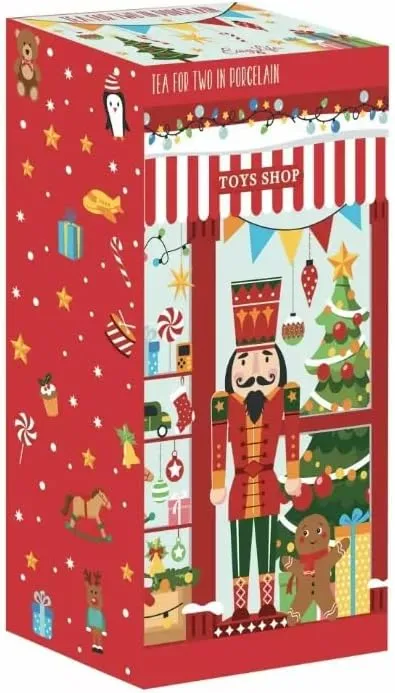 - Preciosa tetera con dos tazas apilables, fabricada íntegramente en porcelana, con diseño de cascanueces y maravillosas decoraciones navideñas