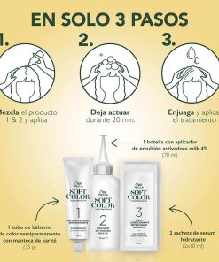| ¡Ama tu cabello teñido y saludable con 92 % menos quiebre y brillo que dura semanas! Gracias a Soft Color, el nuevo color natural avanzado que respeta tu cabello. La fórmula cuidadosa sin amoniaco cuenta con aceite de coco, manteca de karité y aloe vera para brindar tonos radiantes y cobertura de canas armoniosa que dura hasta 29 lavadas con delicada fragancia floral. Apto para todo tipo de cabellos, teñidos o sin teñir. ¡Todas las texturas lo amarán!