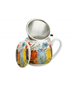 Taza de430 ml con infusor y tapa GARDEN FELINES, de la serie Animals, fabricada en porcelana New Bone China, caracterizada por un elegante y natural color blanco crema con un brillo delicado, además de una durabilidad excepcional.