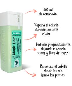 El Tratamiento Intensivo Diurno Magic Hair protege, nutre y fortalece el cabello durante el día, mejorando su salud y apariencia.