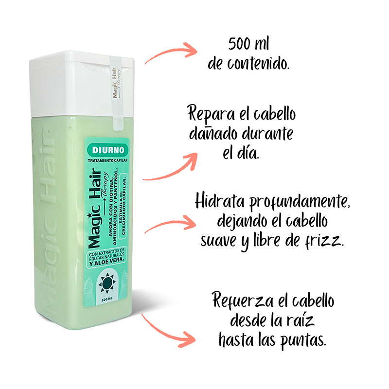 - El Tratamiento Intensivo Diurno Magic Hair: Protege el cabello de los daños diarios causados por el ambiente.