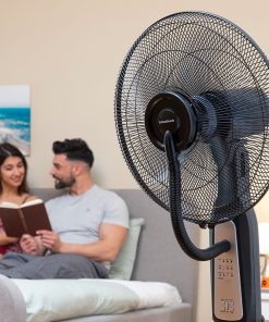 - Gran calidad: Su potencia de 90 W y su motor de cobre le aportan calidad y durabilidad, refrescando cualquier habitación con un bajo consumo. Sus 40 cm de diámetro, sus 5 aspas ahumadas y su oscilación automática de 80º potencian la salida de aire y facilitan la distribución homogénea del aire en la estancia.