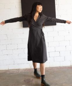 El vestido cruzado negro liso es, perfecto para cualquier ocasión. Está cuidadosamente elaborado con un 95% de algodón orgánico y un 5% de elastano, combinando así sostenibilidad con una inigualable comodidad y flexibilidad.