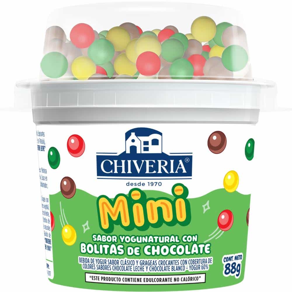 Delicioso yogur natural cuchareable acompañado de crujientes bolitas de chocolate y un juguete sorpresa, ideal para alegrar los momentos de los más pequeños.